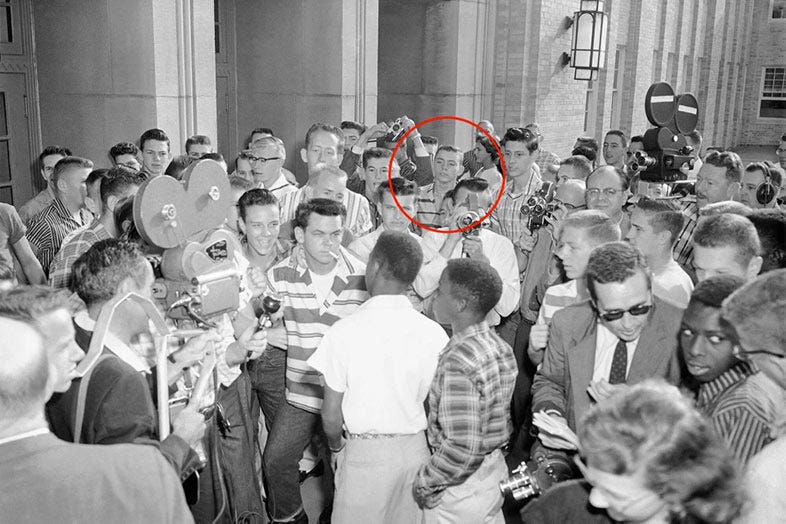 STICK TO SPORTS. . . So the Washington Post uncovered a picture of Jerry Jones, while researching a series of stories about the NFL’s poor record of promoting its Black coaches to top jobs. It’s 1957 and Jones is in a large group of white boys seen blocking Black kids from entering an Arkansas high school.